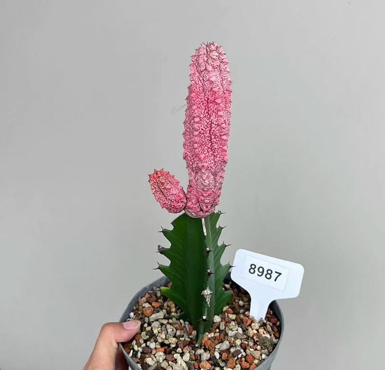 The plant grows on limestone and granite steep slopes at elevations of 150–270 meters, requiring full sun and a warm environment of 15–35 °C, with a winter minimum temperature that must remain above 15 °C. Moderate watering is needed during the growing season, with larger water requirements in summer, but cultivation often encounters maintenance problems. Wild populations have sharply declined for unknown reasons; in 1967 only four stands remained, and the species is now listed as endangered. Artificial propagation is mostly done by grafting onto Euphorbia rootstocks, as direct seed cultivation is difficult. The cultivated variety “Damask” is prized by collectors for its distinctive pinkish stem, yet it still retains the growth habits and toxic properties of the original species.